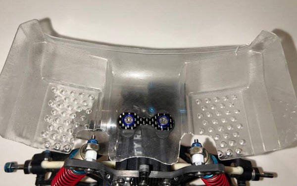 BOKI Racing aftermarket Aero Matrix wing for the Modern Vintage XX2 RC car. Made from .030 Lexan, this 6.5" wing offers several new an innovative features including: aero dimples for improved downforce, multi-cutline trailing option, and a tiered center section to match our new 2-n-1 rear tower.